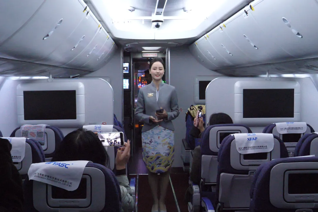 探访团参观驾驶员模拟舱、乘务员训练舱。