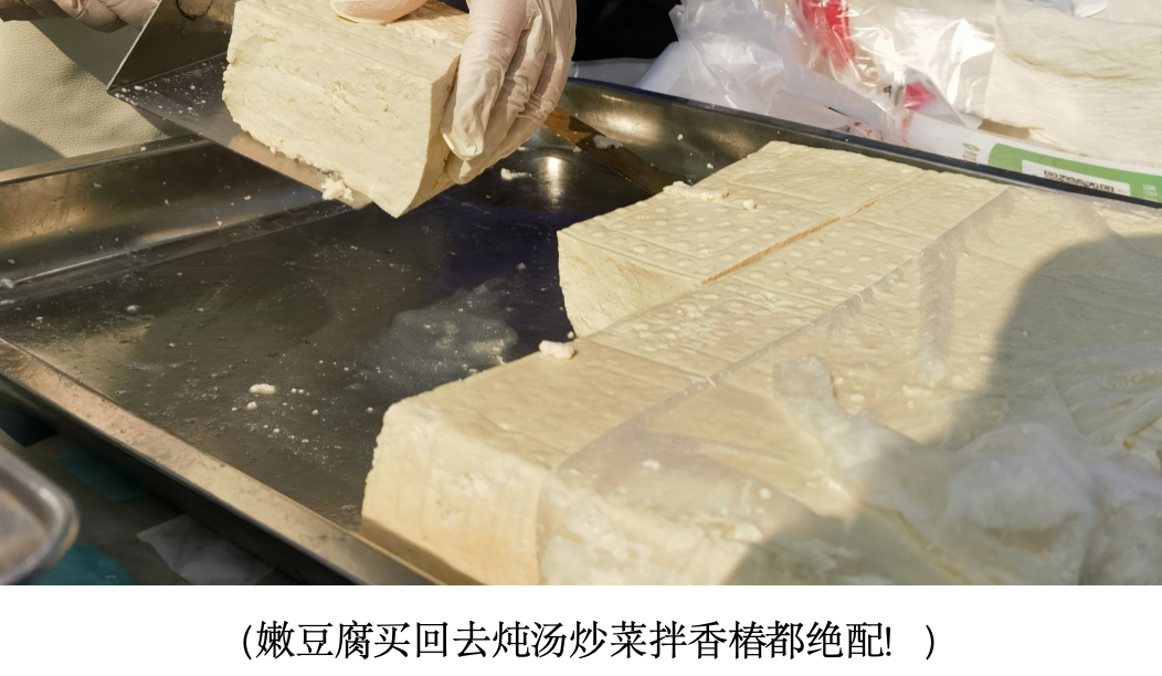 这可不是普通豆腐!纪各庄挨着北运河,水质好,做豆腐的手艺从乾隆年间传下来,豆腐坊全是老方子做豆腐——泡豆、磨浆、人工点卤,不加任何添加剂,人多的时候,一天能卖上千斤豆腐。