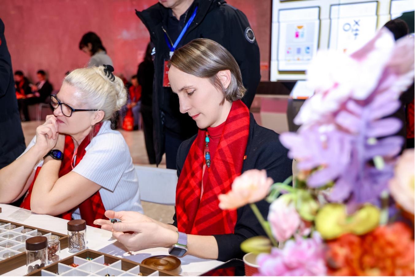 在非遗体验区域,外籍专家沉浸式体验竹叶书、内画、串珠手作、京点品鉴等中国传统文化与美食。国家级非遗项目北京兔儿爷(泥彩塑)备受关注,外籍专家涂出造型威武可爱、寓意吉祥平安的北京兔儿爷。东城区级非遗项目北京剪纸传承人,中国高级工艺美术师徐阳先生以京味民俗、京剧脸谱、吉祥纹样为题材指导外籍专家剪裁特色图案。现场热闹喜庆,洋溢着节日氛围。