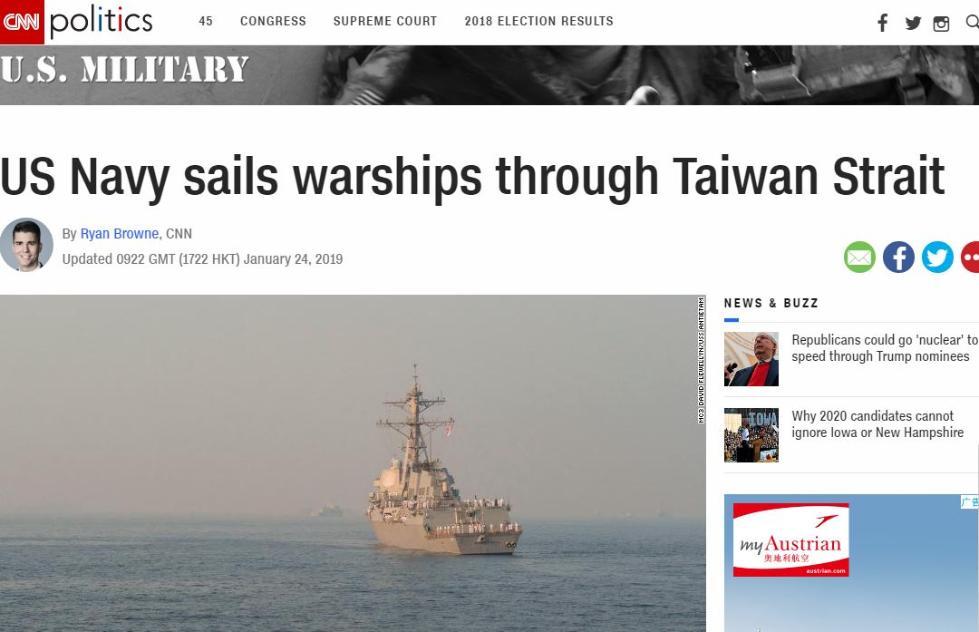 美军舰再过台湾海峡,台媒称解放军同日远海训练_北京时间