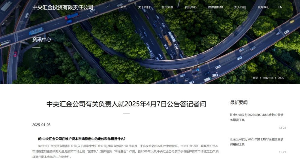 中央汇金公司有关负责人就2025年4月7日公告答记者问。