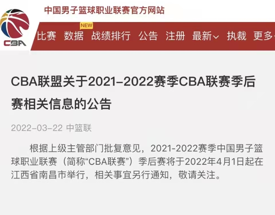 CBA官方消息,根据上级主管部门批复意见,2021-2022赛季CBA联赛季后赛将于2022年4月1日起在江西省南昌市举行。为确保安全,首钢男篮与其他11支季后赛球队都将直接从目前所在赛区前往南昌,首钢队首轮12进8的对手将是吉林男篮,如果能成功过关,他们将对阵常规赛第2名浙江广厦。