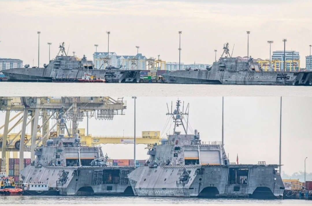美军濒海战斗舰出现在马来西亚港口。 图源:外媒援引社交媒体