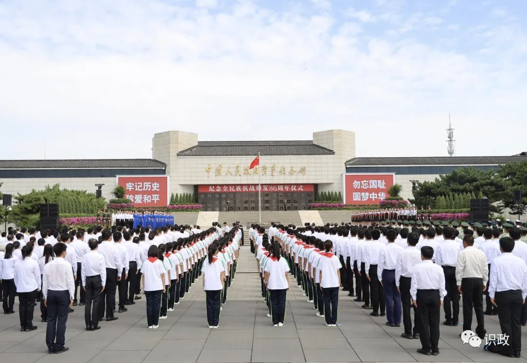 86年前的7月7日,日本侵略者制造了震惊中外的卢沟桥事变。中国共产党号召全中国人民、政府和军队团结起来,筑成民族统一战线的坚固长城,谱写了一段气壮山河、可歌可泣的全民族抗战史。如今的卢沟桥畔,中国人民抗日战争纪念馆巍然矗立。上午10时,纪念仪式在雄壮的国歌声中开始。首都学生代表饱含深情地朗诵了《保卫卢沟桥》《中国共产党在民族战争中的地位》两首抗战诗文,追忆抗战历史,时刻警醒人们,历史不能忘记。首都大学生合唱团演唱了抗战歌曲《延安颂》《没有共产党就没有新中国》,用铿锵的旋律抒发了当代青年以史为鉴、不懈奋斗、逐梦新时代的情怀。