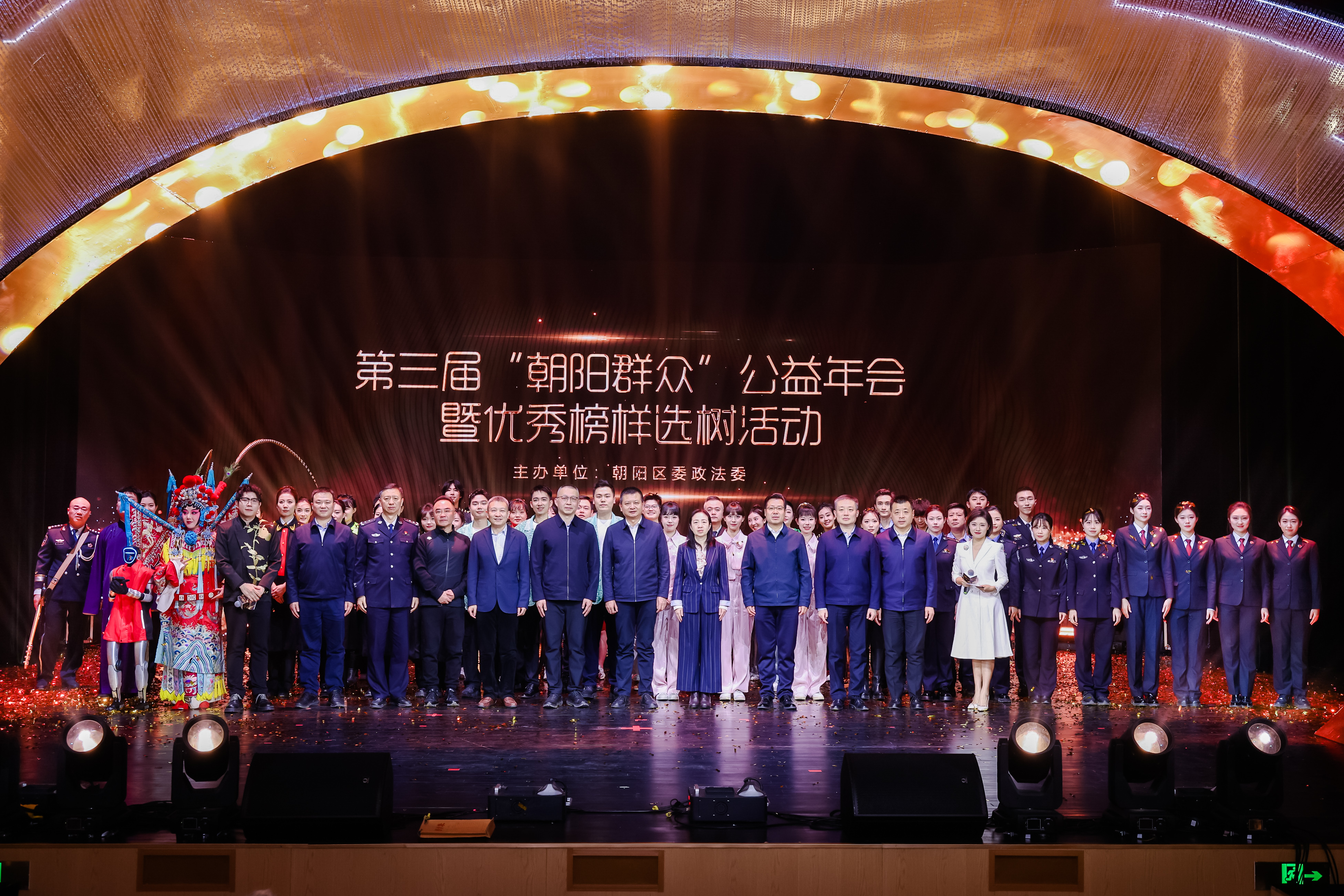 为奋力推进中国式现代化的朝阳实践,持续提升五区建设,全力建好五宜朝阳,展现各领域“朝阳群众”榜样风采,1月29日,朝阳区委政法委成功举办了第三届“朝阳群众”公益年会暨优秀榜样选树活动,北京市委政法委副书记王中峰,市委政法委基层治理处处长刘海林,朝阳区委书记吴小杰,区委副书记、区长聂杰英,区委常委、政法委书记陈大鹏,区人大常委会党组成员、副主任毕重伟,副区长、公安朝阳分局局长毕波,区政协党组成员、副主席连文胜,区人民法院党组书记、院长刘海东,区人民检察院党组书记、检察长马天博,区委政法委分管日常工作的副书记马海鹰,公安朝阳分局政委芮波,各相关委办局、各街乡主要领导,以及各行各业的朝阳群众代表共500余人参加。此次活动成功选树了100余名各领域“朝阳群众”优秀榜样,并首次设立“团结协作先锋团体”奖项,集中展示了18名优秀榜样及3组优秀团体的典型事迹。他们中既有常年扎根社区、服务民生的基层骨干,也有深耕法治、医疗、教育等领域的专业工作者,以及来自国际志愿服务队的志愿者等等。