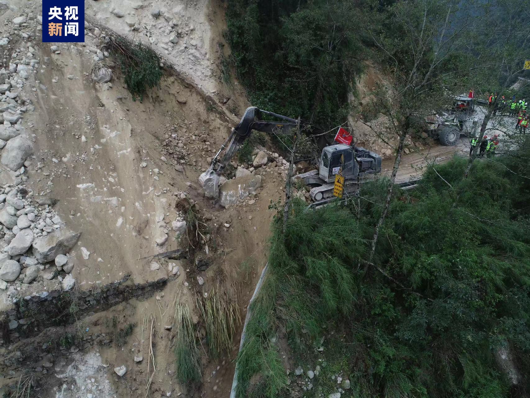 消防救援队伍在挺进中看到,318国道目前多处发生垮塌导致道路中断。