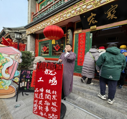 为了让游客逛厂甸时体验更丰富,发小天台和宏宝堂合作,分别在琉璃厂东街中国书店三楼和西街宏宝堂内,推出亲子戏剧演出和相声书场演出,场场演出几乎都座无虚席。