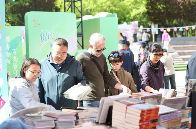 ▲人们在北京朝阳公园书市购书。