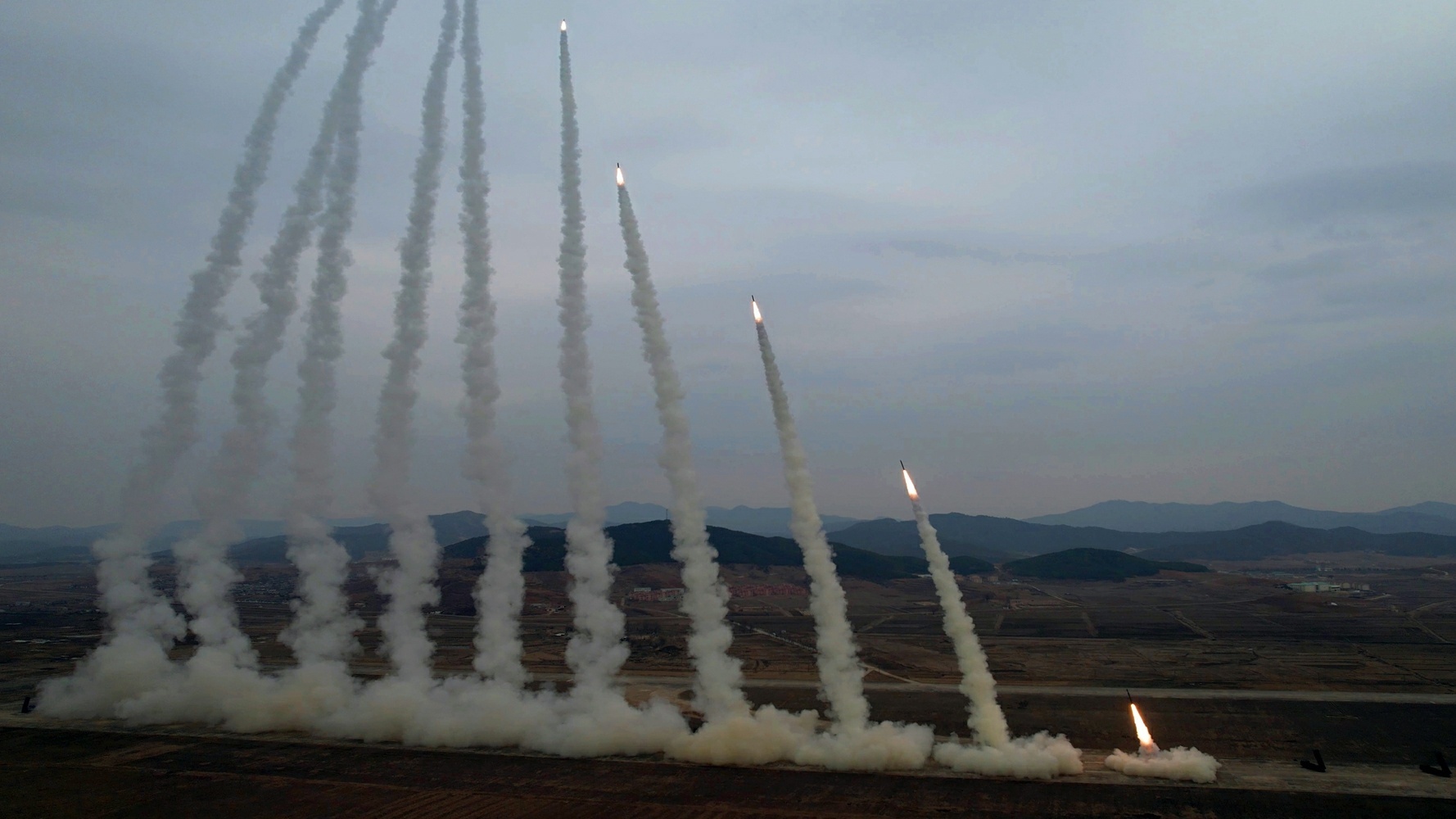 据悉,火箭炮弹准确击中364.4公里外的朝鲜东部海域岛屿目标。