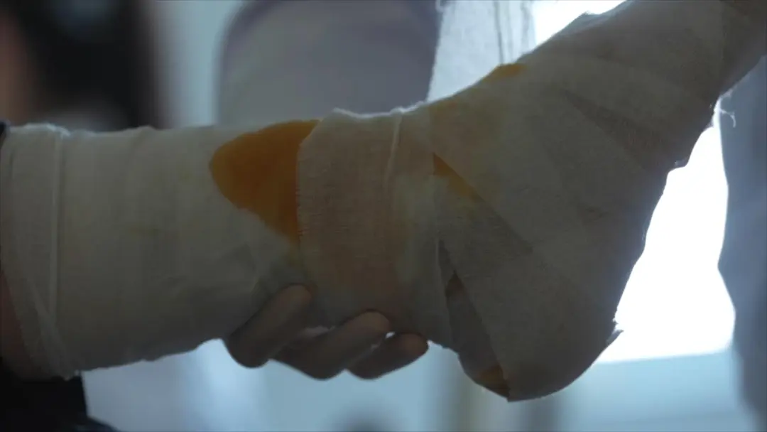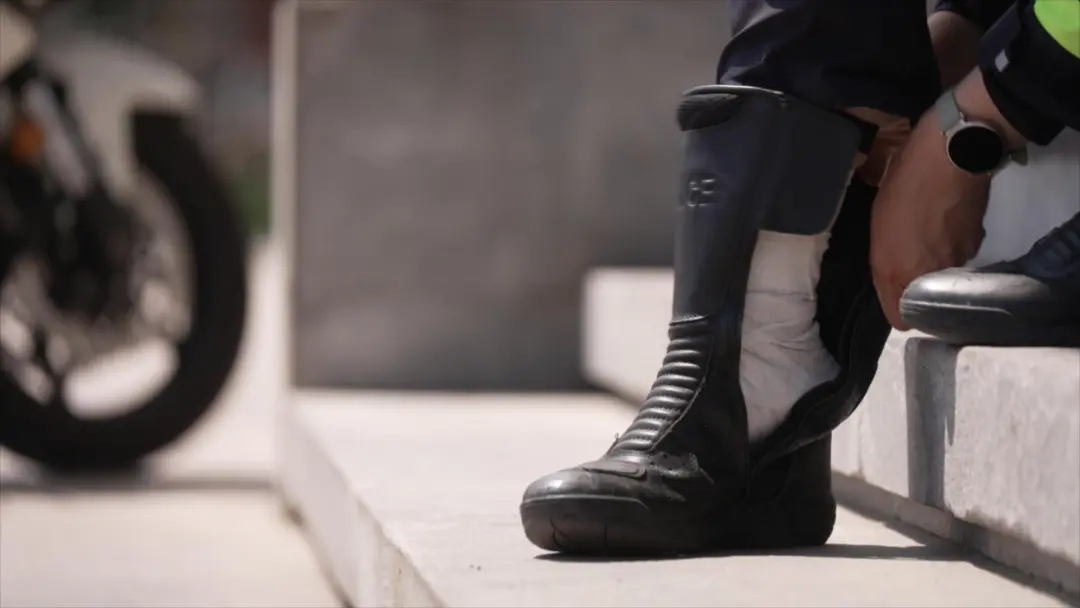 第二天,郭宇航找队友要了一双42号的骑行靴,因为脚上缠着厚厚的绷带,她自己的鞋已经穿不上了。