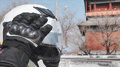 郭宇航边说边笑,让人忘记她已经是骑在摩托车上的飒爽女铁骑,反而更像是一个和蔼可亲的社区志愿者。