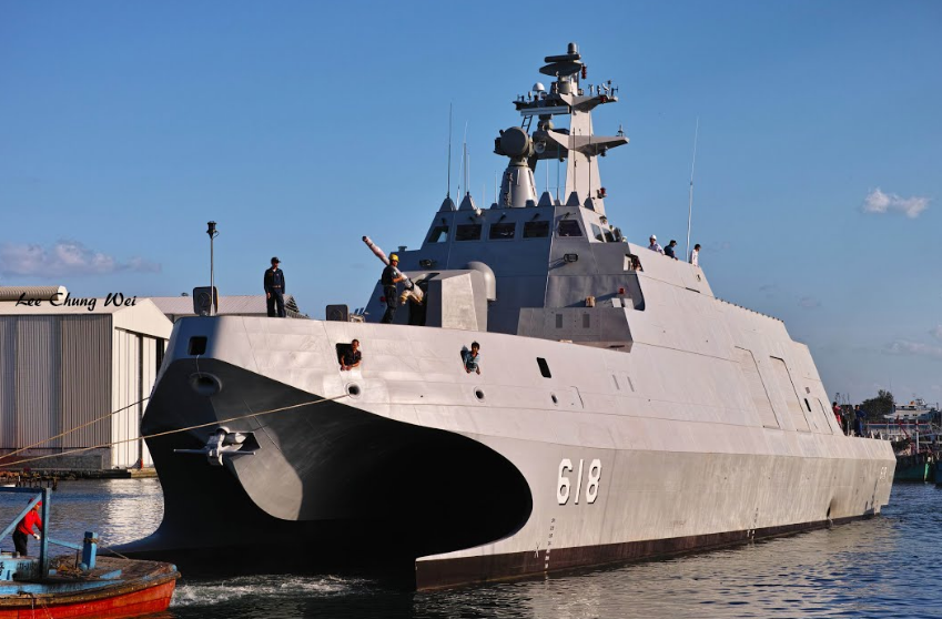 目前台军拥有数个雄三导弹发射载具,除了隶属海军的陆基的发射车以外,海基的发射平台也有不少,有“锦江”级巡逻舰,也有新锐“沱江”舰。“沱江”舷号为PPG-618。该舰也不算太神秘,去年9月台军在苏澳海军基地开放时,展示过“沱江”舰所谓轻量化后的弹舱,可配置8枚亚音速的雄风二型反舰导弹、8枚雄风三型超音速反舰导弹。