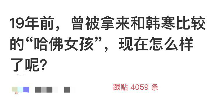 但在差不多 20 年前,她可是与 " 国民岳父 " 韩寒齐名的人物。