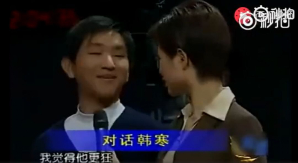 那期邀请了当时年仅 17 岁,刚刚出版了《三重门》的韩寒作为嘉宾,同时被邀请的还有几位教育专家。