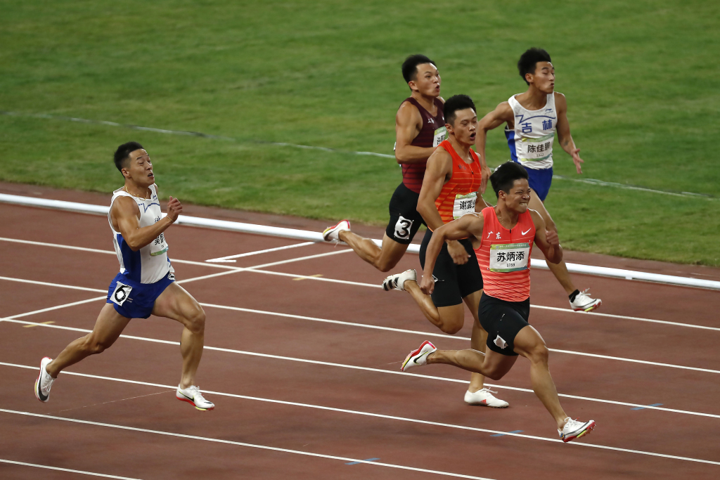事实上,全运会金牌是苏炳添始终在追求的东西。2009年,首次参加全运会的苏炳添,以10秒52的成绩获得第六名;2013年,苏炳添以10秒12的成绩负于张培萌,获得亚军;2017年,苏炳添以10秒10的成绩负于谢震业,再次获得亚军。