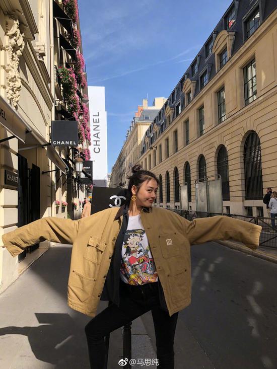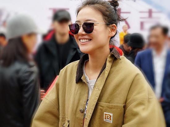 思纯也是很喜欢这款外套了。在之前新剧的开机仪式上,也穿它亮相。佩戴墨镜,酷劲十足,甜美的笑容又难掩俏皮可爱。