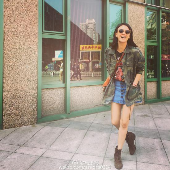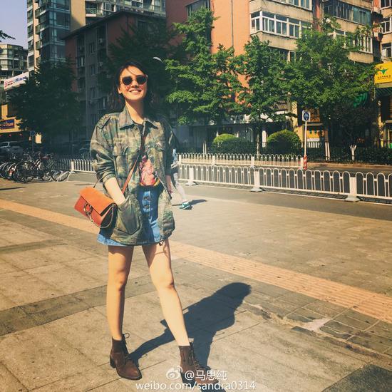 思纯夏天也喜欢工装系列,比如这件迷彩工装外套就非常帅气,搭配牛仔短裙。整体LOOK非常利落干练,行走在暖暖的阳光下,魅力满分啊。