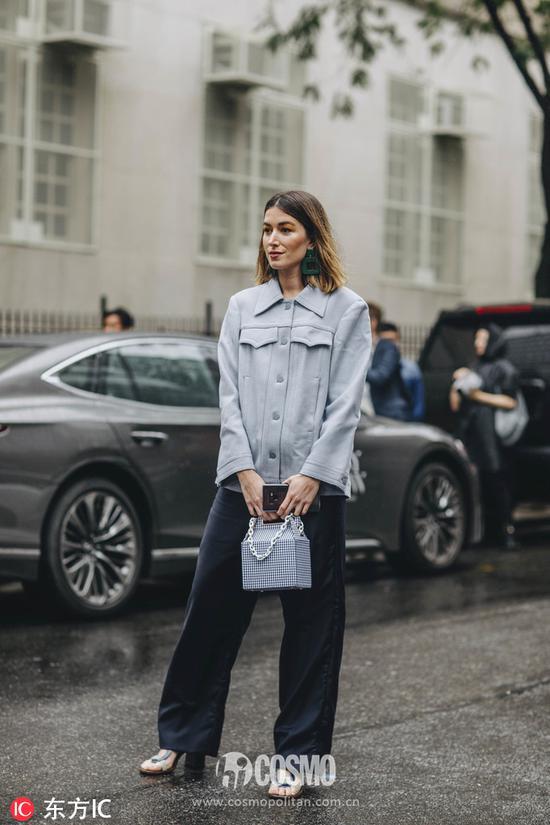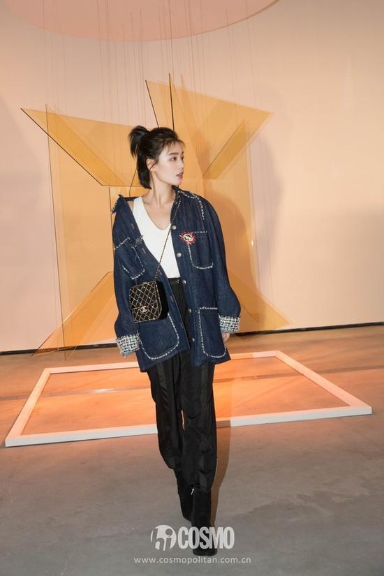思纯现身Chanel新品发布会时,曾穿着Chanel的镶边衬衫款牛仔外套。这款牛仔外套工装气十足,搭配黑色烟管裤,是利落率性的cool girl。