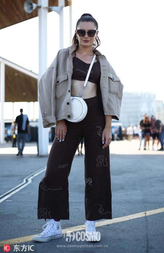吉吉-哈迪德(Gigi Hadid)用高领露脐装搭配工装外套,凸显出时髦性感的感觉。佩戴Roberi & Fraud墨镜,脚踩Reebok运动鞋,也是非常有潮范。