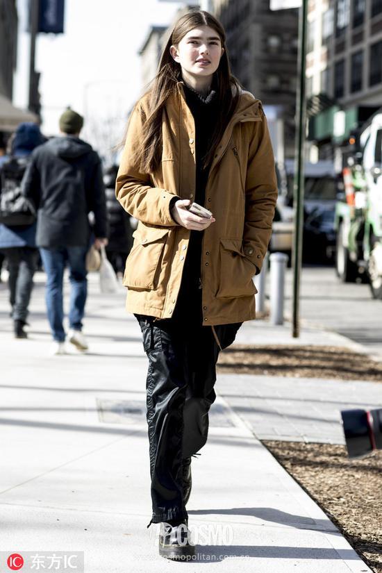 思纯不仅尝试不同款式的工装外套,她也不断尝试不同材质面料的工装外套。然鹅COCO发现,她都能轻松驾驭!