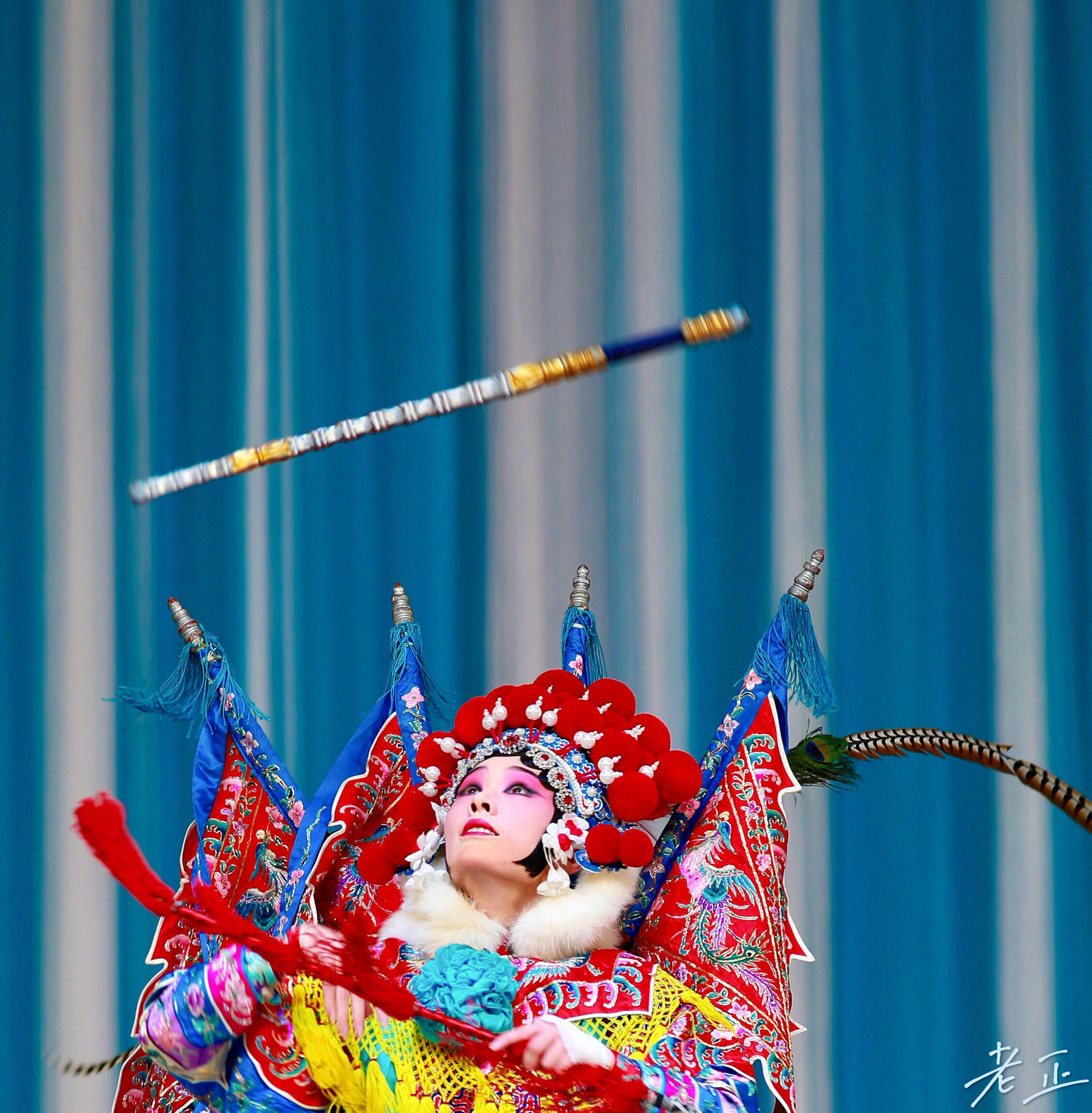 《竹林计》又名《火烧余洪》,京剧折子戏,是《三下南唐》中的一折,叙述宋代巾帼英雄刘金定寿州解围搭救宋太祖赵匡胤,大战老道余洪的故事。此图为刘金定抛锏的抓拍。