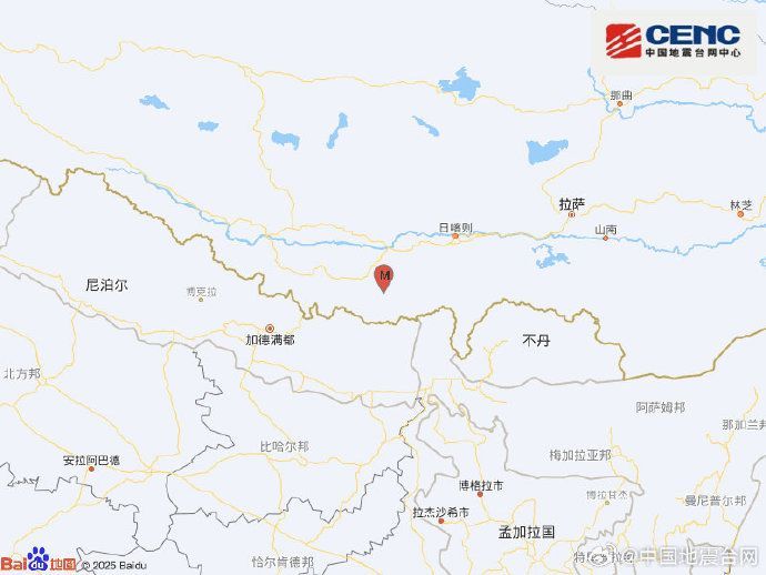 20时58分在西藏日喀则市定日县(北纬28.45度,东经87.52度)发生5.0级地震,震源深度10千米。