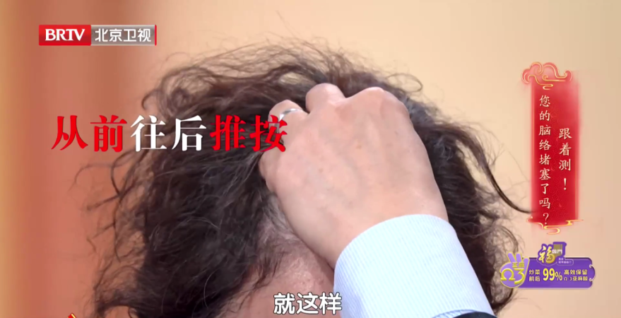 五指分开,用手指在头顶从前往后轻轻推按,如果感觉头皮有压痛感,或者摸到坑坑洼洼、凹凸不平的区域,就说明脑部络脉有一定程度的堵塞了。