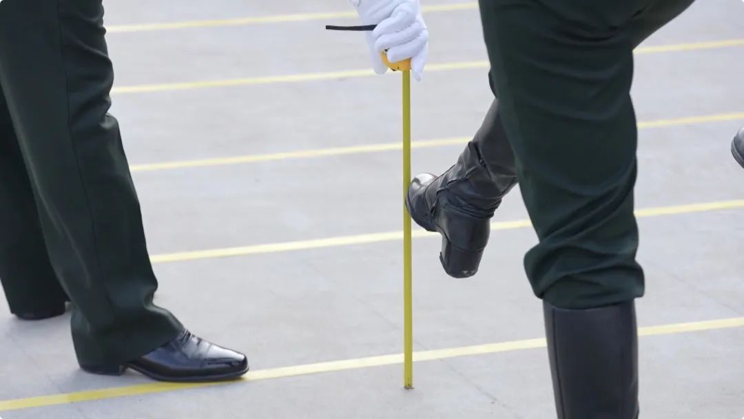 仪仗司礼大队王冉冉介绍:“从入场喊番号的那一刻起评分就已经开始了,往前跨一步的距离就是地上黄线所标注的75厘米,标准是不能误差超过2厘米。”