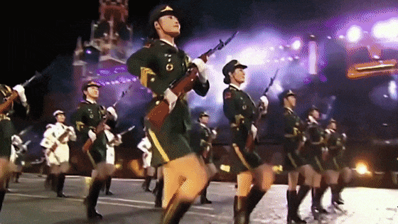 2015年9月5日,36名女队员赴俄罗斯参加“斯帕斯钟楼”国际军乐节,这是仪仗女兵首次海外亮相,也是受邀参加的15个国家里唯一一支女兵队伍。