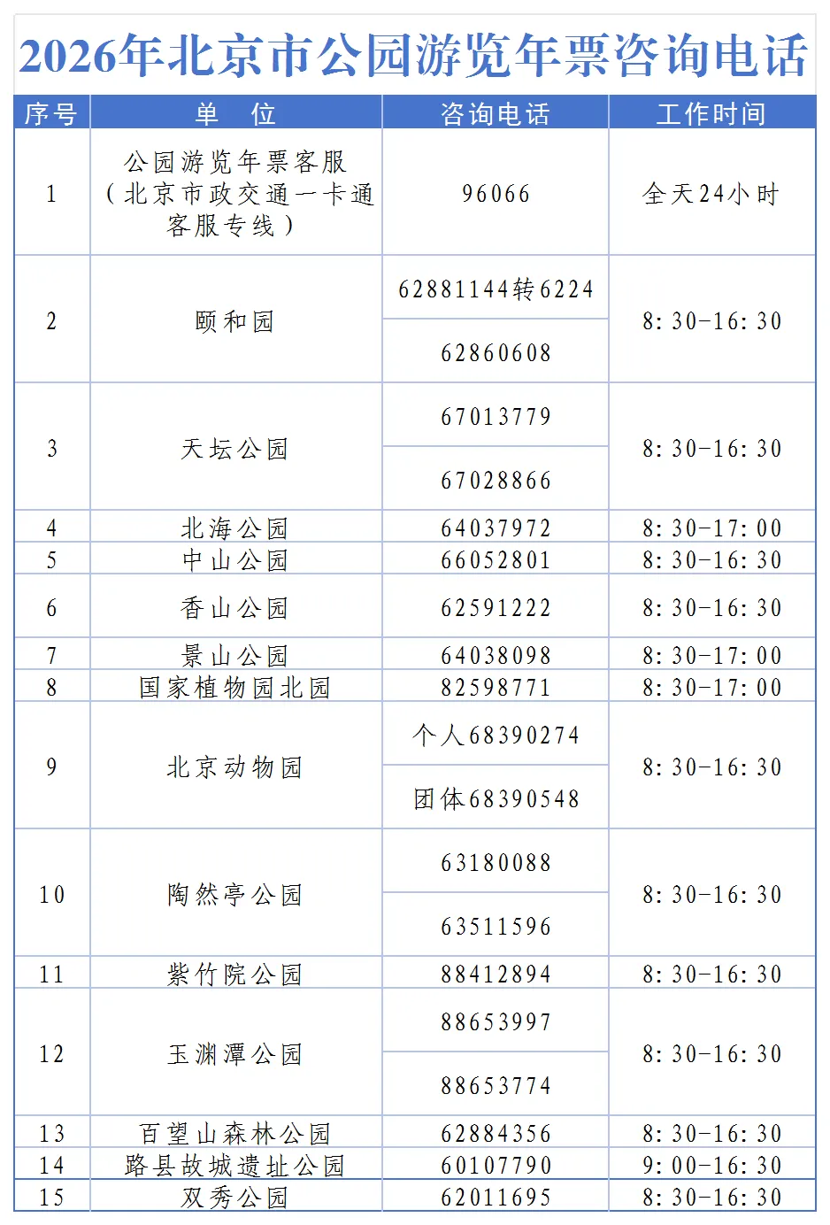 线下办理渠道:市公园管理中心所属各公园现场发售实体卡,新增路县故城遗址公园发售点,游客可到颐和园、天坛公园、陶然亭公园、玉渊潭公园、百望山森林公园及双秀公园等14家公园年票发售点购买新卡或充值旧卡。办理时间为2025年12月15日至2026年1月15日,每日8:30至16:30,星期六、日不休息。单位团体可凭借单位介绍信和工会会员名录等,咨询各发售点对接办理。