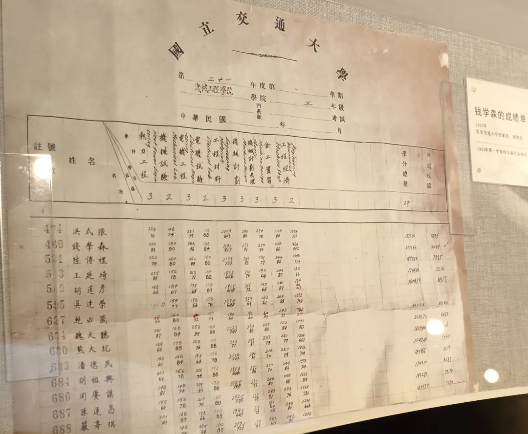 钱学森的成绩单