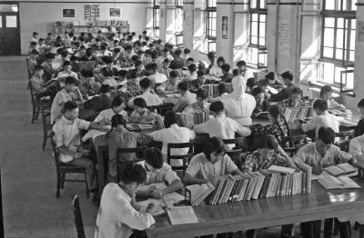 1959年,学生们在西迁后的交大校园图书馆阅览室内学习。图片来源:央视新闻客户端