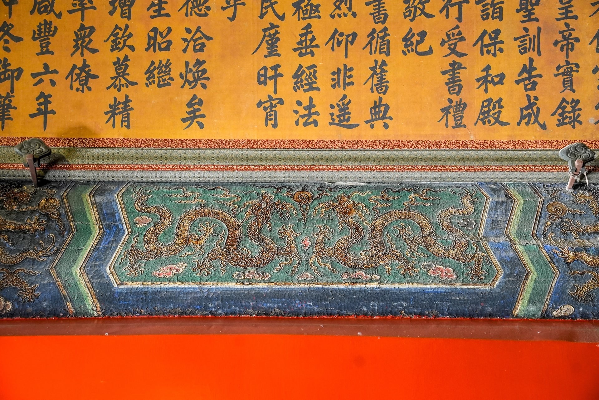 养心殿西暖阁门头的木雕。