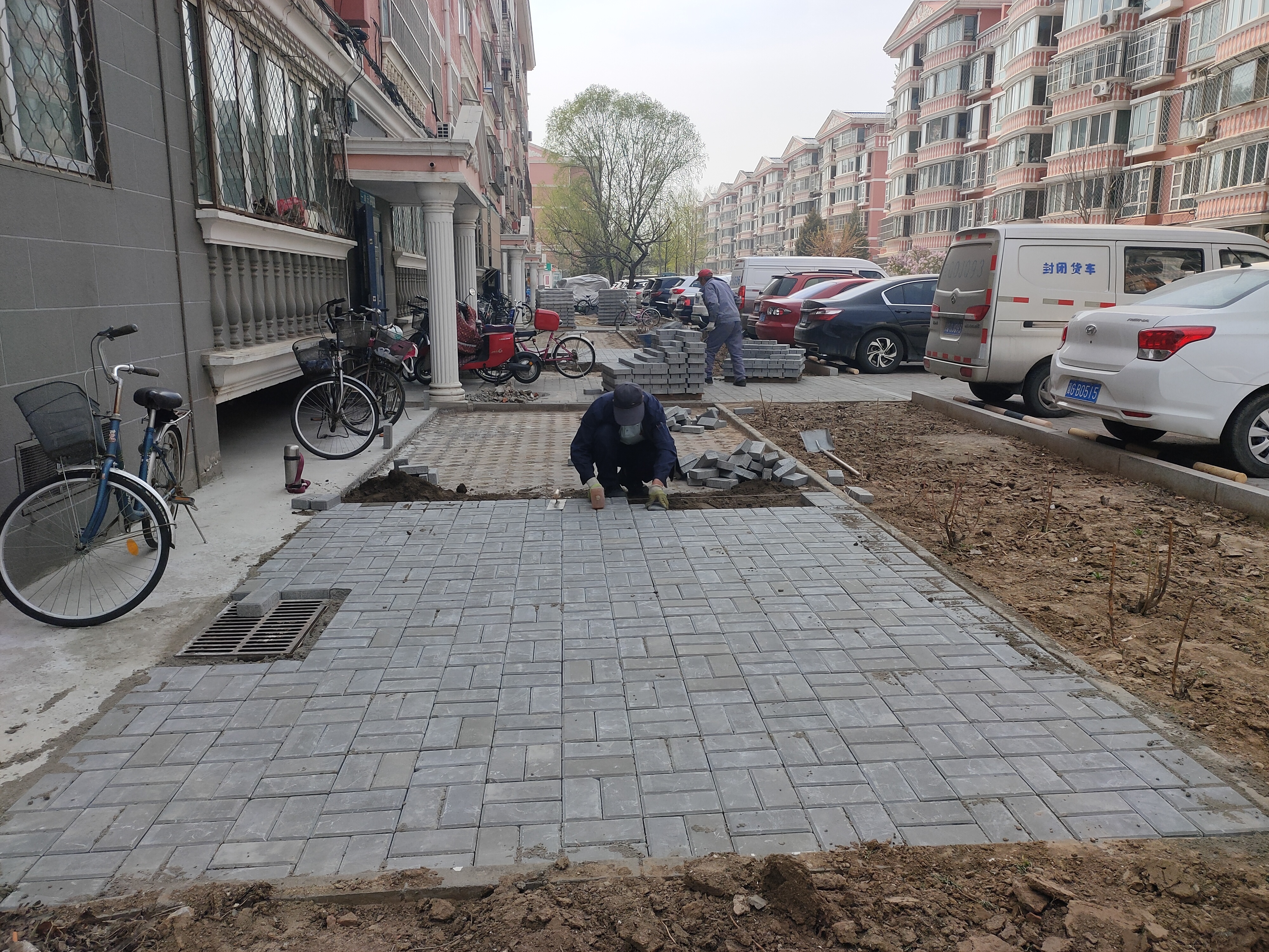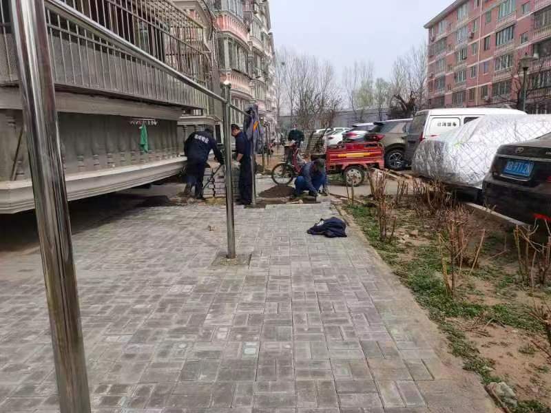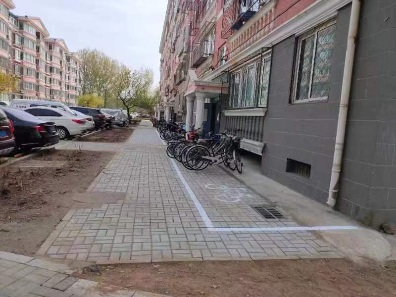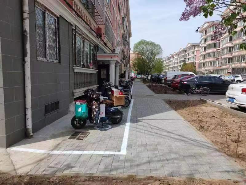 4月10日上午,施工队到达现场进行施工,将原有的草坪砖及破损路面全部挖开,重新做防水,铺设透水砖,完成后在新路面上施画非机动车停车位。历时近10天,施工人员将8号楼和10号楼前的草坪砖全部更换完毕,更换路面500多平方米。