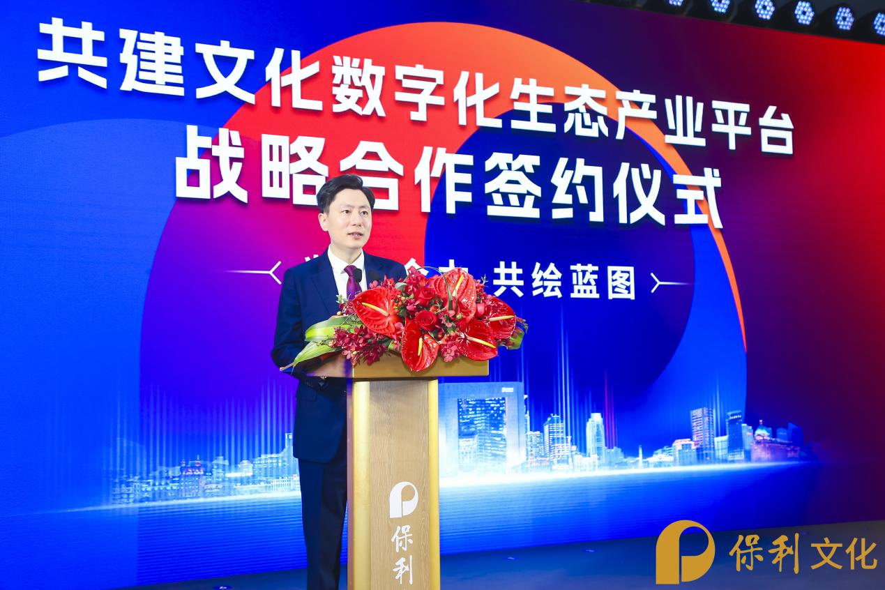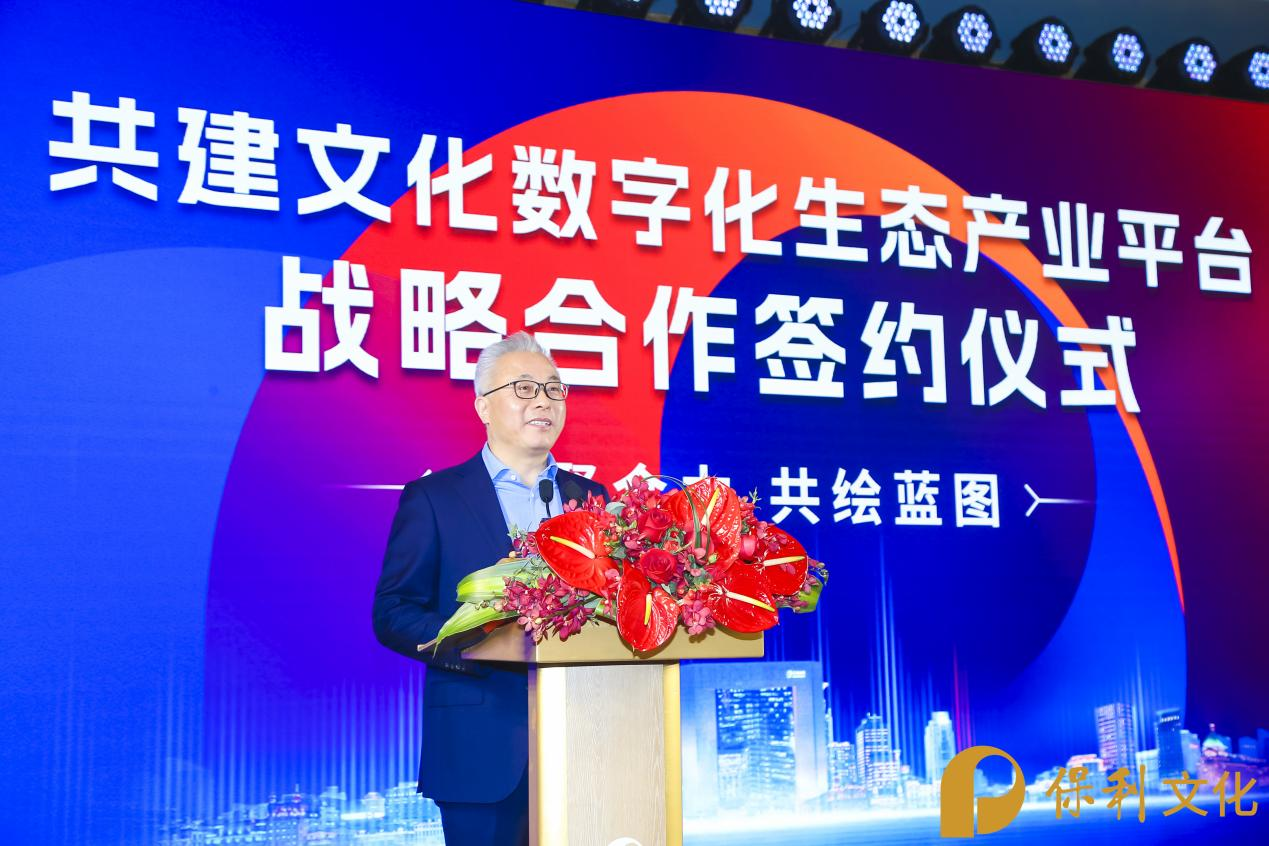 保利文化集团党委书记、董事长王波在致辞中提出对数字文化产业的三点感受:一是顺时应势,坚定推进文化数字化的“狂飙”发展;二是凝神聚力,共筑文化数字化的“流量地球”;三是守正创新,携手迈入文化自信、科技向善的“人世间”。希望与战略合作伙伴,加速“行规”演进、共促“资金”融通、合力“技术”矩阵,共同携手走出一条资源共建共享、合作互利共赢的数字文化发展道路,创造更多既能满足人民文化需求、又能增强人民精神力量的数字文化产品,共助产业良性、健康发展。