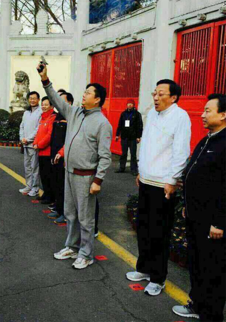 长跑起点设在市政府门前广场,开始之前举行了简短的仪式。缪瑞林发表简短的新年致辞,随后杨卫泽为此次长跑活动鸣枪。镜头抓拍下了这样一张照片,杨卫泽打响发令枪的瞬间,缪瑞林闭着眼,半张着嘴,高耸着肩。