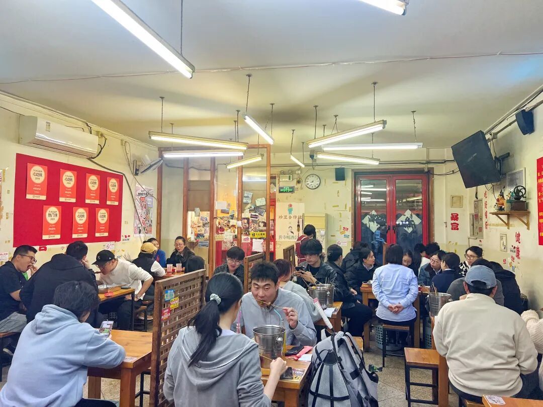 炒豆合作社店铺座无虚席,食客品尝美味的烤串。