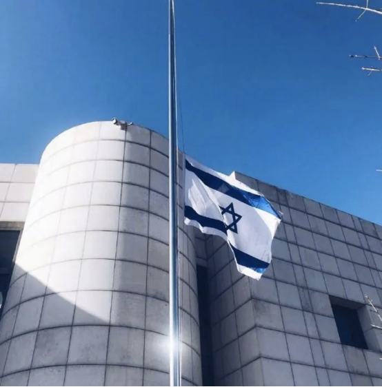 (以色列驻华大使馆降半旗)
