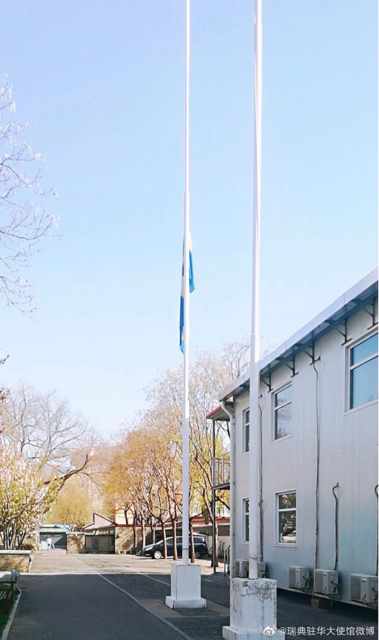(瑞典驻华大使馆降半旗)