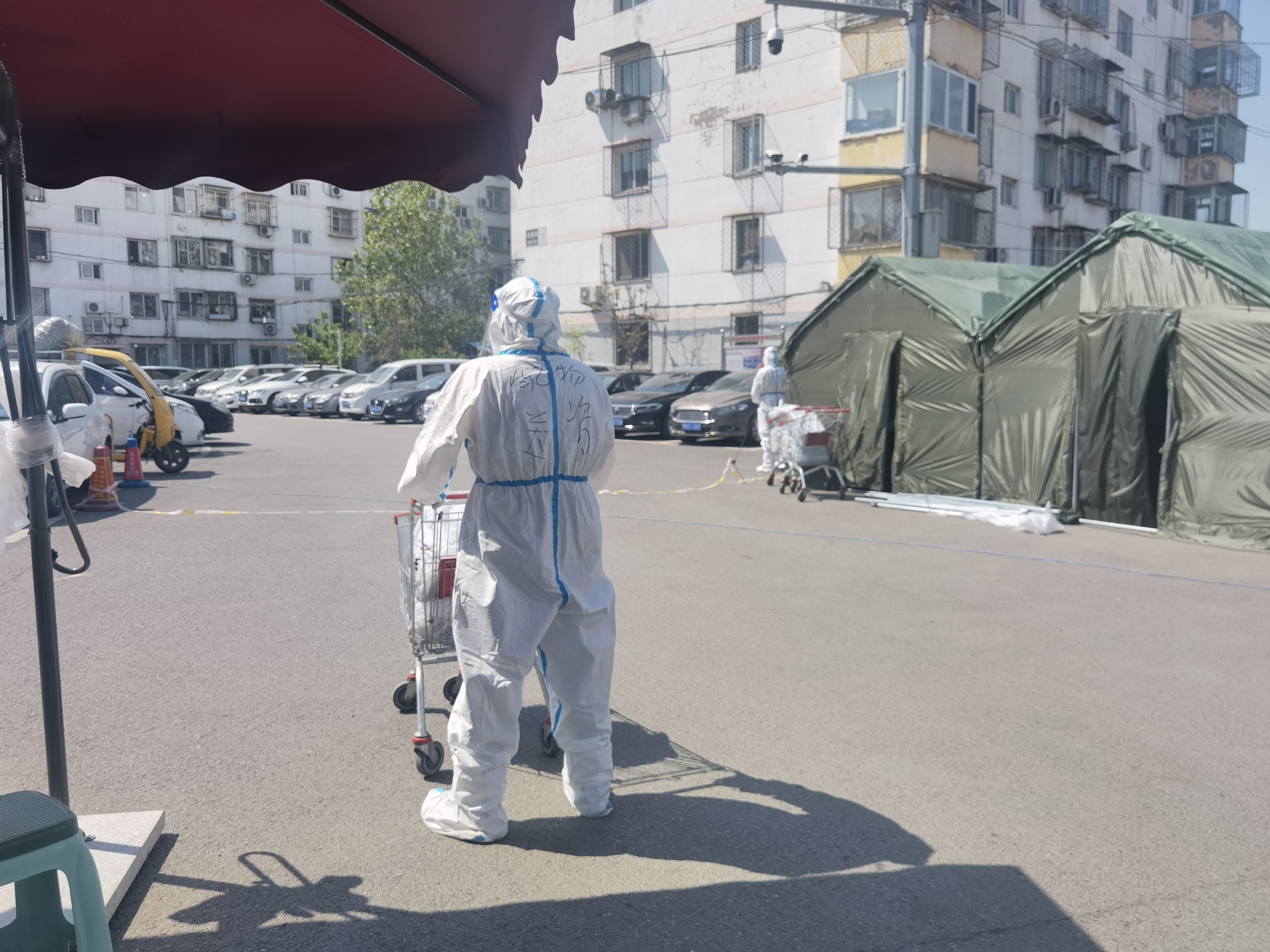 “我在送快递的时候,赶上林海园小区封控,出不去。我觉得自己既然在小区里,就是小区的一分子,得干点力所能及的事儿。”黄俊琨表示,尽管事出突然,但看到工作人员迅速投入工作中,黄俊琨颇受鼓舞,当即决定报名。由于从事快递行业,黄俊琨向社区工作人员提出,愿意发挥自己的优势,帮忙递送物资。在得到工作人员同意后,他立即换上防护服,变身“大白”,开启“派件”模式。