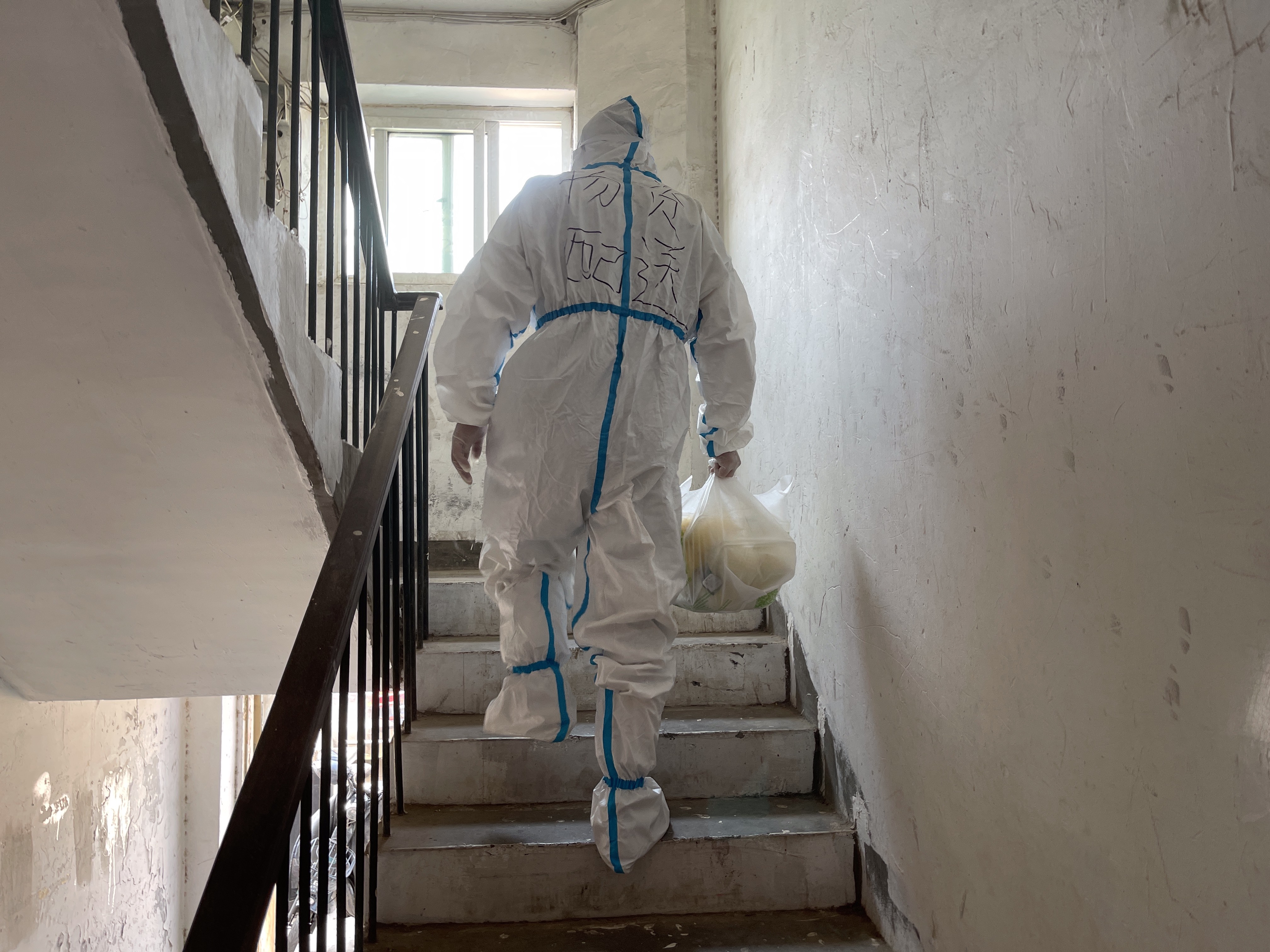 快递小哥变“大白” 封控区干起“老本行”_北京时间