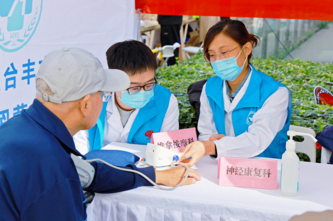 义诊体验区“大咖”云集,来自首都医科大学中医药学院、丰台区康复医院的专家教授为居民讲授中医药科普知识,北京医院、丰台区康复医院、北京同仁堂第二中医医院、蒲黄榆卫生服务中心、刘家窑中医医院等医疗单位的中医名医现场义诊,为居民提供健康咨询、推拿按摩、耳穴压豆、理疗康复、电子艾灸等康养服务,让居民沉浸式体验中医文化的博大精深和独特魅力。