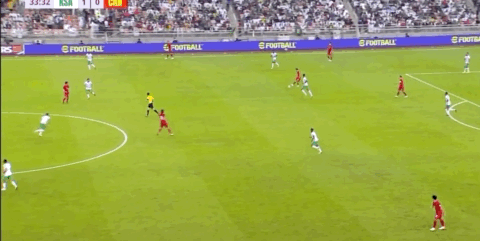 第34分钟,张玉宁中场妙传,武磊跑出绝妙机会,可惜又一次错失单刀,这也是国足上半场唯一有威胁的进攻。