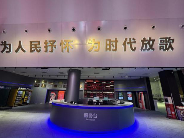 值得关注的是,北大厅服务区域完成重装焕新,正面镶嵌五角星标志与金色胶片底纹的超大布景,全新360°环形服务台正式投入使用。台身设计兼顾亲和高度与电影特色,拉近了与观众的距离。北大厅内咨询台、自助票务区、信息查询区同步优化布局,集成接待咨询、自助取票、盖章打卡、影讯查询等“一站式服务”,有效减少观众动线折返,提升服务效率。