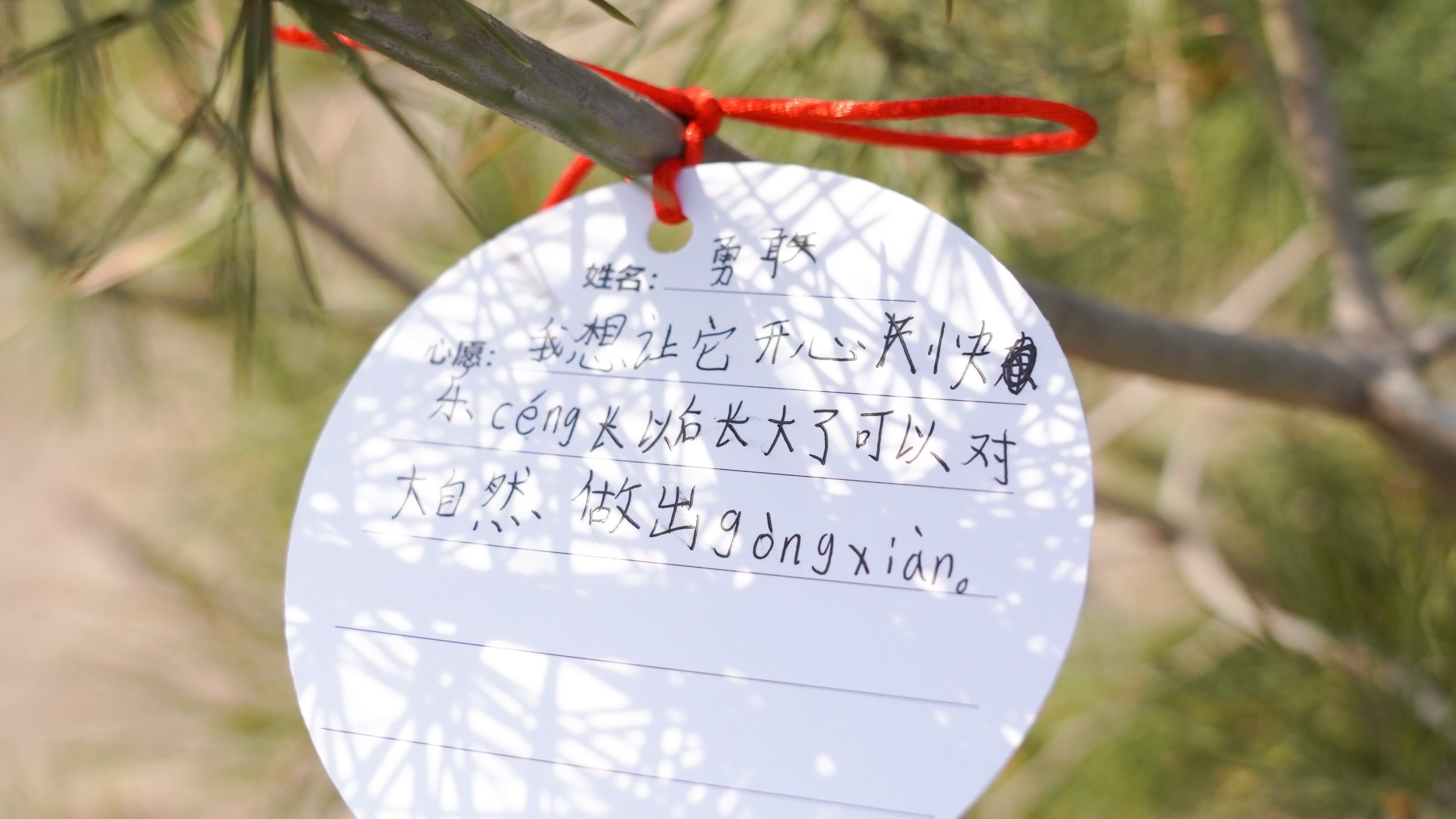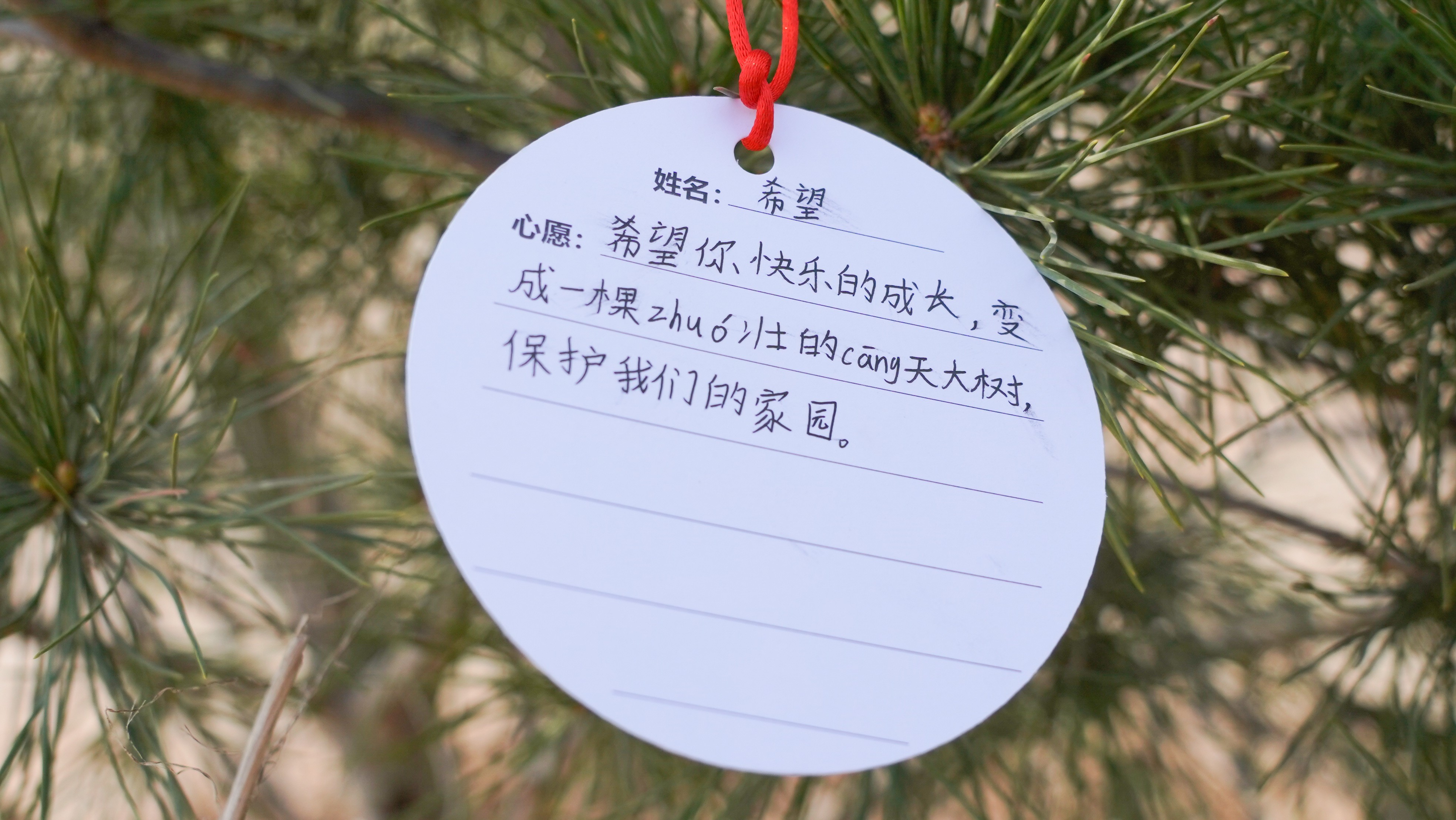 植树结束后,同学们纷纷将自己的树牌和心愿卡挂在树上,写上自己最好的祝愿,有对自己未来的美好期望,也有对亲人的安康祝福。经过大家的共同努力,放眼望去,棵棵小树迎风挺立,山黛满目,春生万物,有树可栖,未来可期。