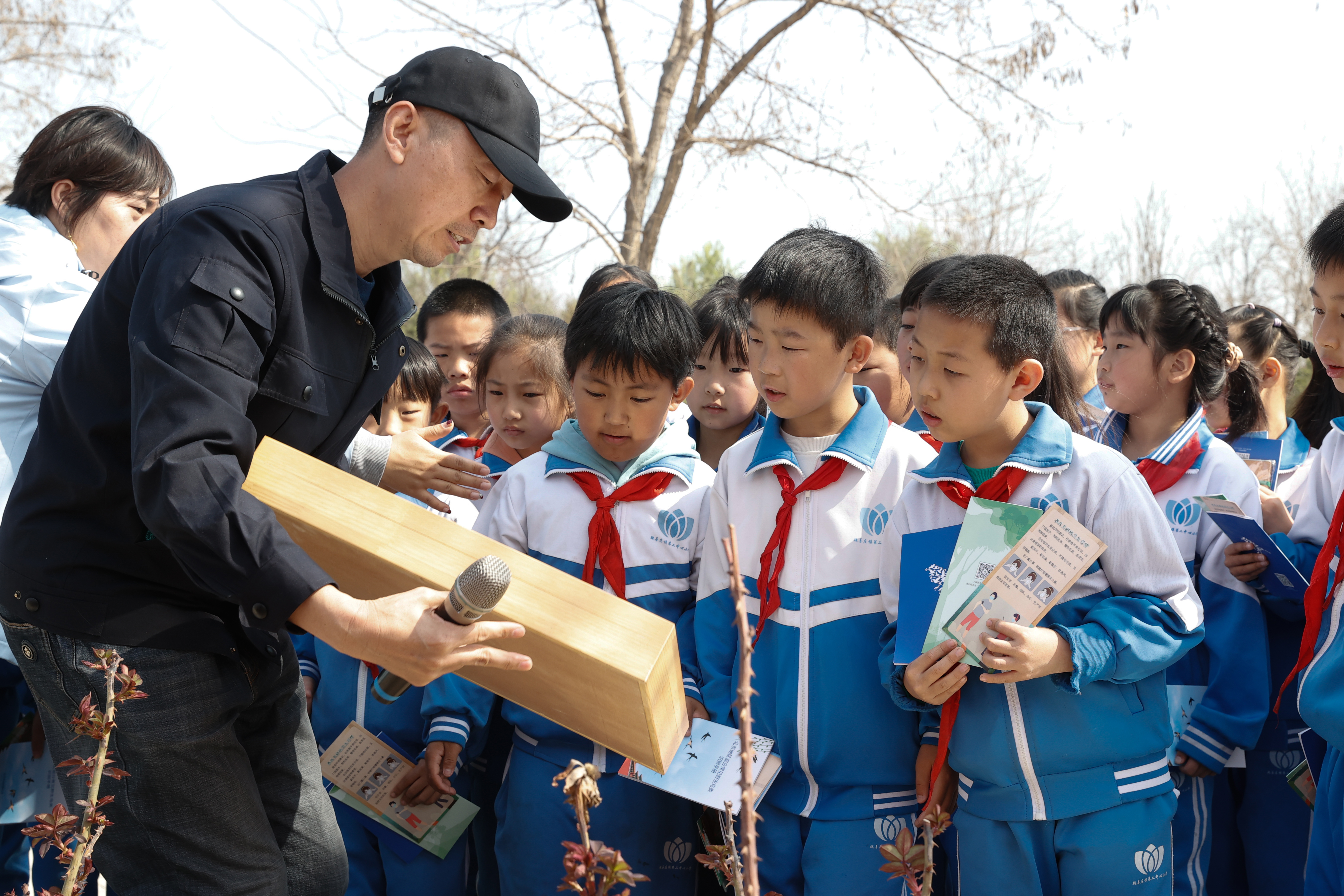 “这些树有什么特点?”“为什么要在这个时间段种树呢?”……带着同学们的疑问,护林员张海元从树木的品种、养护、周期、历史故事等相关知识,为同学们进行一一讲解,并向同学们提出倡议,呼吁大家关心、爱护绿色生命,以实际行动绿化环境和绿化校园,精心呵护花草树木,争做绿化宣传员、环保小卫士,身体力行去爱护生活中的一草一木。