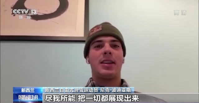 新西兰自由式滑雪运动员 尼克·波迪亚斯:我对接下来的奥运比赛充满信心,我很高兴再上赛场,我真的很期待,我唯一想的就是在赛场上控制好动作,尽我所能把一切都展现出来。
