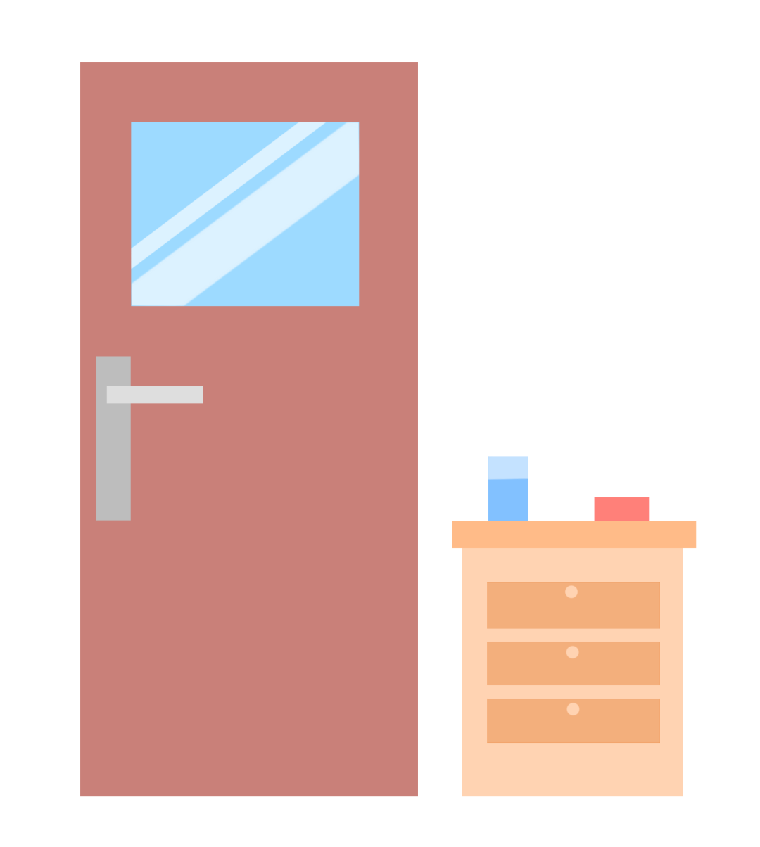 房间内要配备一些个人防护用品和消毒产品,包括体温计、纸巾、口罩、一次性手套、消毒剂等;同时还要准备一个带盖的垃圾桶。