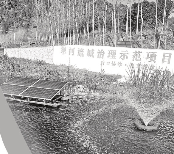 去年12月底开工的犟河绿色低碳韧性小流域治理示范项目,包含河道治理、河岸步道、监测平台和雨污分流4个部分。北青报记者在黄龙镇斤坪村村口处看到,村内的小河流向犟河时,被营造成不同水位的深潭浅滩,通过种植的苦草等沉水植物,进入犟河的水明显从泛着绿藻变得清亮起来。同时,河岸边可见一些监控设备。“看到水面上的光伏板了吗,它产生的电就足以支撑这些设备以及喷泉用电。”斤坪村党支部书记鲍正利介绍,治理之后,犟河的水质明显变好,“采用了中国科学院复合矿物增效草型生物泵水生态修复技术,在有效净化河水、稳定修复河床底泥的同时,还能提升示范河段生态系统的固碳增汇水平和水生态健康等级。”