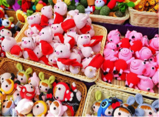 各种材质的毛绒猪、泥塑猪、糖画猪、扑满小猪都非常抢手。